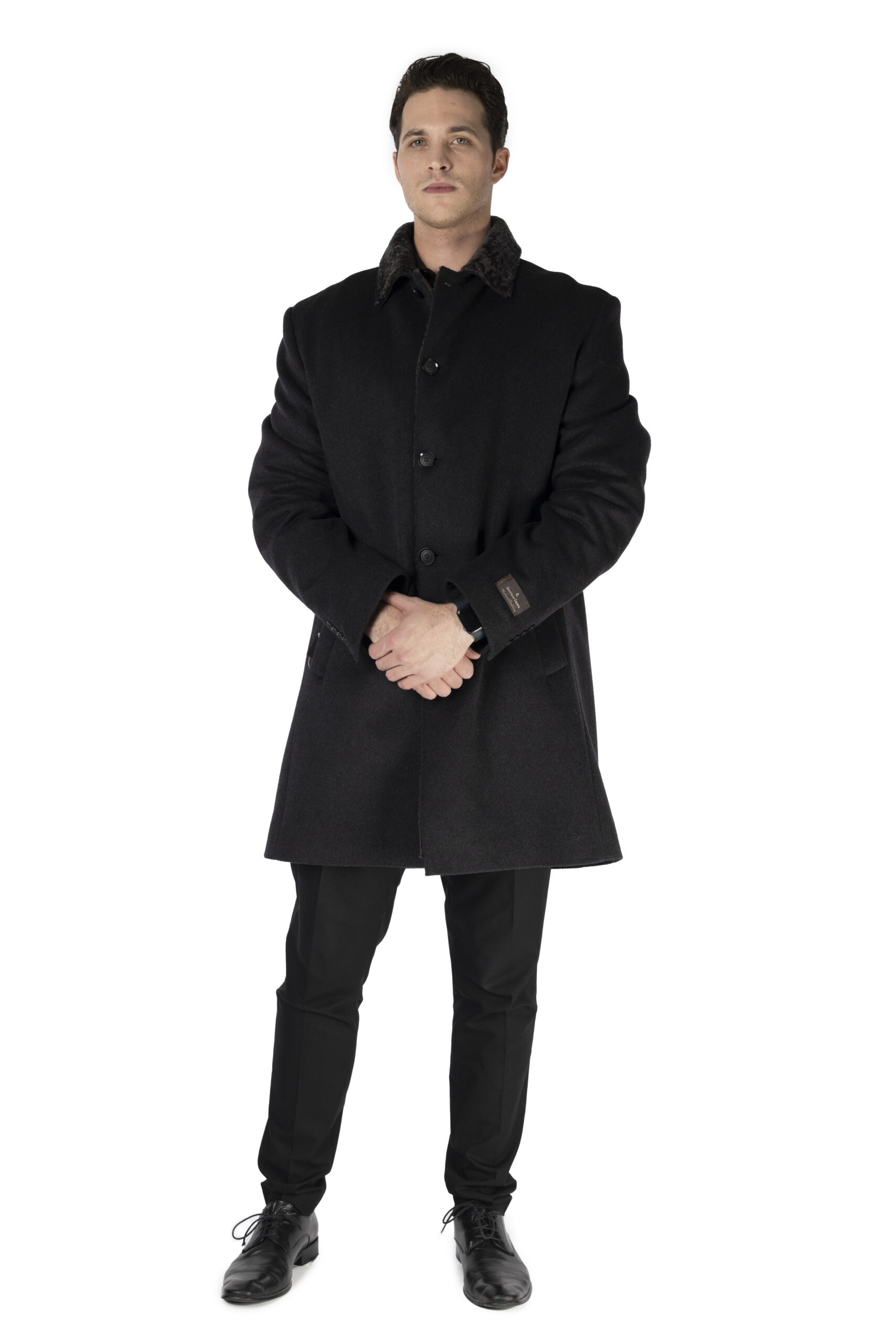 Men’s Black Wool 3/4 Coat with Shearling